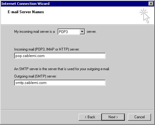 - » Enter the Outgoing Mail (SMTP) Server: smtp.cablemi.com