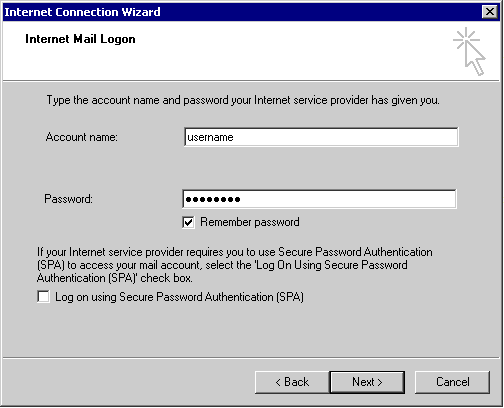 - » Enter your Account Name, this is your email username (lowercase characters)